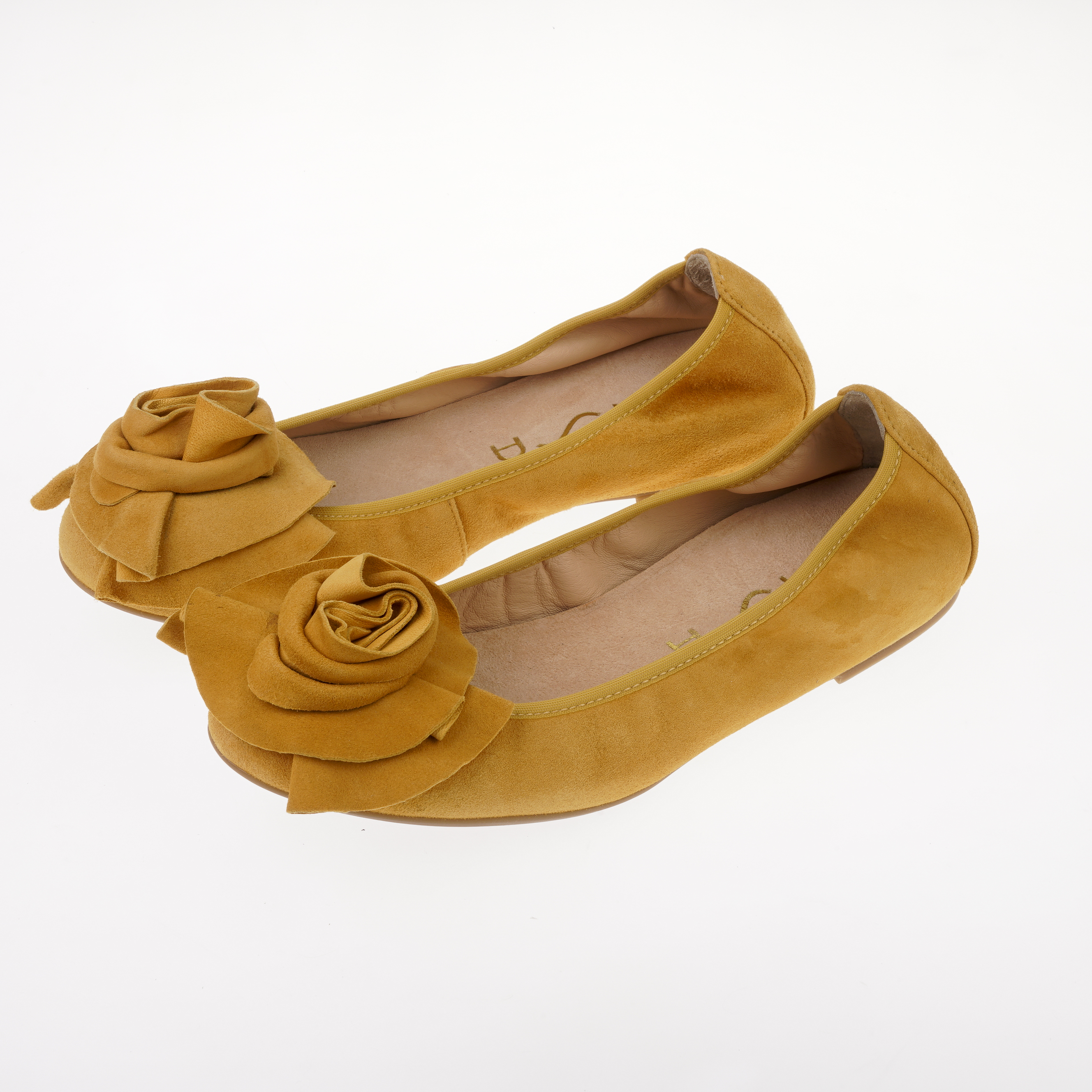 горчичные балетки с эффектным цветком. мягкие и очень комфортные.